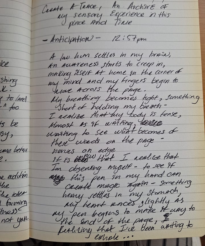She resisted forcing an outcome, reminding herself the work didn’t need to be complete. Midway through her time, she recorded a voice note - speaking it into existence rather than writing it down. Near the end, she left a note on the hard drive for future artists: a thread to weave through the project, building a living dialogue.